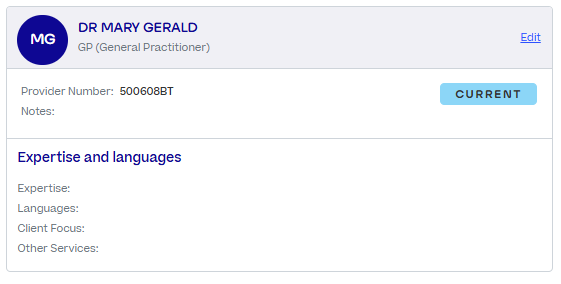 2) Update the provider number in the referral data. Click on the name of the GP which opens their contact information. Click on "Edit" and update the provider number.